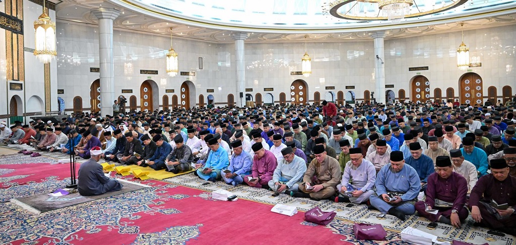 Duli Yang Teramat Mulia Paduka Seri Pengiran Muda Mahkota Pengiran Muda Haji Al-Muhtadee Billah ibni Kebawah Duli Yang Maha Mulia Paduka Seri Baginda Sultan Haji Hassanal Bolkiah Mu'izzaddin Waddaulah, Menteri Kanan di Jabatan Perdana Menteri berkenan menunaikan Sembahyang Fardhu Zohor berjemaah yang diimamkan oleh Yang Berhormat Pehin Orang Kaya Paduka Seri Utama Dato Paduka Seri Setia Awang Haji Salim bin Haji Besar.